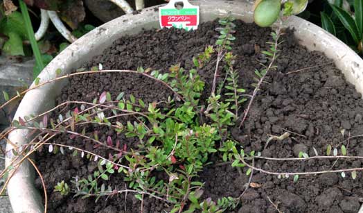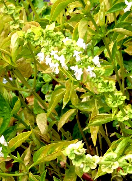 バジルは夏の間よく育って、11月現在は花を咲かせて葉も枯れかけている。名残惜しくてまだ片付けていない。