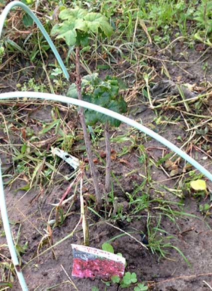 ラズベリー、つるこけもも、レッドカーラント。果物の木を植えるのはとてもわくわくする。11月の様子。夏にホームセンターで苗を買ってきたもの。初収穫はいつになるかな。