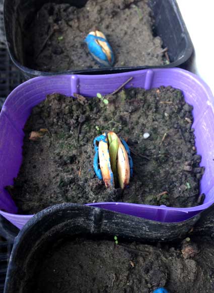 そら豆に初挑戦。(空豆栽培日記) ソラマメ 2016年02月29日 0 初挑戦のそら豆。うまくいけばすごくたくさん採れるらしい。それを聞いてとにかく一度やってみようということで、そら豆の栽培日記(記録)をつけてみる。 11月22日、そら豆の種をまく。時期としてはかなり遅いと思う。先週か、先々週にNHKでそら豆の育て方をやっていたので、その時にまいていればまだよかったと思うけれど。ちゃんと発芽するか、育つか分からないけれどやってみる。種は7粒入って148円。青くコーティングされている。カラスに食べられないように100円ショップで買った防虫カバーをかぶせておいた。 11月27日 相変わらず変化なし。やっぱりまくのが遅すぎたか。最近急に寒くなったし。 11月28日(6日後)。 種は割れてきているが、芽はまだ確認できず。ちゃんと芽ができるか不安。 12月6日(種まきから2週間後) ここにきてついに、種の割れ目の奥に葉っぱの緑を発見。芽がでるかも。でも出たとしても育つかは分からないけれど。 12月12日(3週間後) 先週芽を出したそら豆の種が、ぐんぐん育ち始めた。最近またかなり暖かい日が続いたせいかもしれない。ここまで来るのに時間がかかった。もう少ししたら畑に定植させよう。 12月26日、畑に定植。ポットの中で根がかなり伸びすぎていた。 2月21日。そら豆が結構大きくなってきた。暖かい日が多くなってきて、いよいよ成長の季節かな。種をまいたときは芽が出るかどうかにやきもきしていたが、順調に育っているといえるかな。 [0回]PR